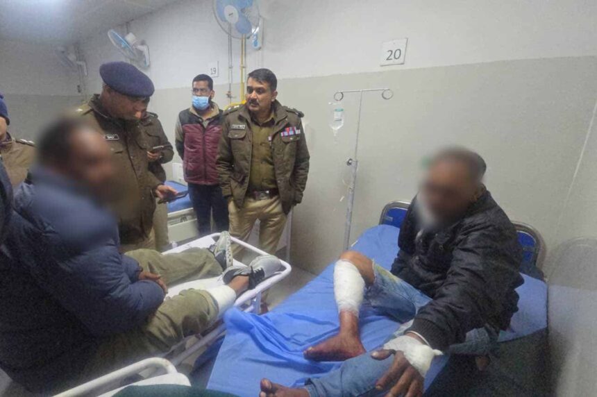मुठभेड़ के दौरान दोनों के पैर में लगी गोली, पुलिस कर रही पूछताछ देहरादून। राजधानी देहरादून की तिब्बती मार्केट हत्याकांड में दून पुलिस को बड़ी कामयाबी हाथ लगी है। रायपुर के लाडपुर जंगल और लालतप्पड़ क्षेत्र में चेकिंग के दौरान बदमाशों और पुलिस के बीच मुठभेड़ हो गई। मुठभेड़ के दौरान दोनों बदमाशों के पैर में गोली लगी, जिसके बाद पुलिस ने घायल दोनों बदमाशों को इलाज के लिए कोरोनेशन अस्पताल में भर्ती कराया। गिरफ्तार बदमाशों के कब्जे से दो देसी तमंचे और वारदात में इस्तेमाल स्कूटी बरामद की गई है। साथ ही पूछताछ में तिब्बती मार्केट में हुई हत्या को अंजाम देने की बात स्वीकार की है। घटना के बाद देहरादून एसएसपी अजय सिंह भी अस्पताल पहुंचे। तिब्बती मार्केट में अर्जुन शर्मा की दिनदहाड़े हत्या करने वाले दो बदमाशों की गिरफ्तारी के लिए एसएसपी अजय सिंह ने टीमों का गठन किया गया था, जिसके बाद टीमें शहर से देहात तक लगातार नाकेबंदी और सघन चेकिंग कर रही थी। चेकिंग के दौरान स्कूटी सवार बदमाश को लालतप्पड़ पुलिस चौकी पर पुलिस ने रोकने का प्रयास किया लेकिन वो भाग निकला। बदमाश भागकर खंडहर फैक्ट्री में घुसकर पुलिस टीम पर फायर करने लगा। पुलिस ने भी जवाबी कार्रवाई की और मुठभेड़ में एक बदमाश के दाहिने पैर पर लगने से वह घायल हो गया, जिसके बाद पुलिस ने बदमाश को गिरफ्तार किया। दूसरे बदमाश को नाकेबंदी और सघन चेकिंग के दौरान रायपुर थाना क्षेत्र में लाडपुर के जंगल से पकड़ा गया। बदमाश ने जंगल से पुलिस पर फायरिंग झोंक दी थी, जिसके बाद पुलिस की जवाबी फायरिंग में बदमाश के पैर पर गोली लगने से वो घायल हो गया। बदमाश को गिरफ्तार कर इलाज के लिए तत्काल कोरोनेशन अस्पताल ले जाया गया। जहां दोनों बदमाशों का इलाज चल रहा है। एसएसपी अजय सिंह ने बताया है कि देहरादून पुलिस ने हत्याकांड में अलग-अलग जगहों पर हुए मुठभेड़ के बाद बदमाशों को गिरफ्तार किया है। फायरिंग में दोनों बदमाशों को गोली लगी है। बदमाशों को अलग-अलग थाना क्षेत्र में चेकिंग के दौरान पुलिस मुठभेड़ में गिरफ्तार किया। साथ ही कोरोनेशन अस्पताल पहुंचकर घटना के संबंध में जानकारी ली गई। बदमाशों का अस्पताल इलाज में कराया जा रहा है और बदमाशों से दो देसी तमंचे और एक स्कूटी बरामद की गई। पूछताछ में बदमाशों ने तिब्बती मार्केट के सामने हुए हत्याकांड को अंजाम देने की बात स्वीकार की है। पुलिस बदमाशों से लगातार पूछताछ कर रही है। गौर हो कि, 11 फरवरी को देहरादून के तिब्बती मार्केट में एक व्यक्ति को गोली मार दी गई थी। जिसके बाद से पुलिस ने आरोपियों तक पहुंचने के लिए सीसीटीवी फुटेज जारी किए थे। मृतक अर्जुन शर्मा की जीएमएस रोड पर फर्म अमर दीप के नाम से भारत गैस एजेंसी है।