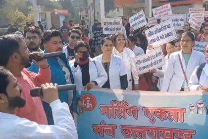 नर्सिंग बेरोजगार अभ्यर्थियों ने घेरा स्वास्थ्य मंत्री का आवास