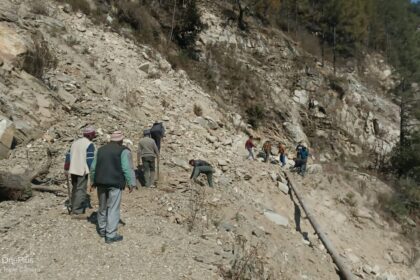 तरसाली में ग्रामीण पहुंचे श्रमदान के जरिये मोटरमार्ग का निर्माण करने