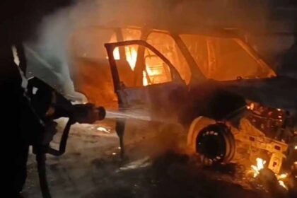 लामाचौड़ में चलती कार में लगी भीषण आग, चालक ने कूदकर बचायी जान