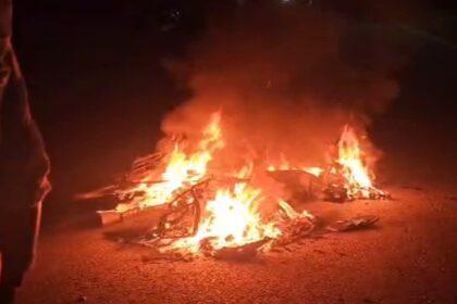 वाहन की टक्कर से बाइक में लगी आग, दो युवकों की जलकर मौत