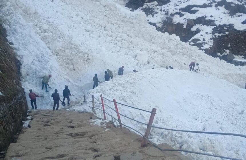 मजदूरों ने थारू ग्लेशियर में रास्ता किया साफ