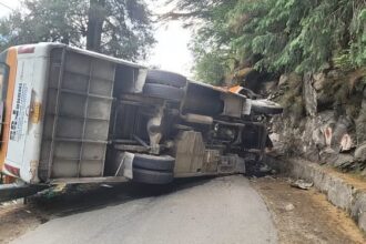 यात्रियों की बस अनियंत्रित होकर पलटी,पांच घायल