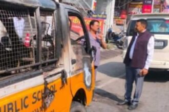 स्कूल वैन में लगी आग, मची अफरा-तफरी