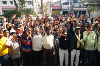 ठेला-रेहड़ी व्यापारियों ने अपनी मांगो को लेकर किया नगर निगम में प्रदर्शन